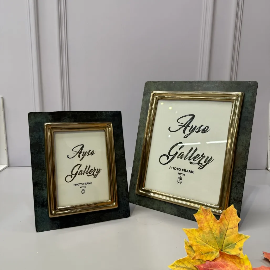 -جنس:دور قاب فلزی رنگ یشمی قسمت طلایی برجسته